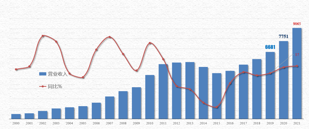 據(jù) 2021年年報統(tǒng)計,全行業(yè)實現(xiàn)營業(yè)收入9065億元,同比增長了17%。根據(jù)重點企業(yè)的統(tǒng)計,重點企業(yè)的年報總共350家左右,營業(yè)收入5738億元,較于2020年增長了18.3%。