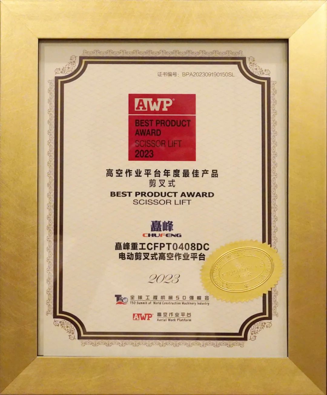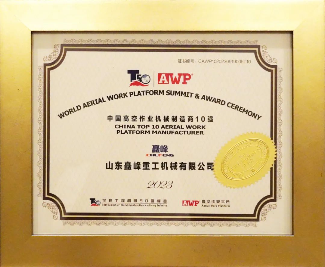 自2021年矗峰重工榮耀獲得中國高空作業(yè)機(jī)械制造商10強(qiáng),連續(xù)三年榮獲“全球20強(qiáng)、中國10強(qiáng)”企業(yè)。矗峰重工將持續(xù)領(lǐng)跑市場(chǎng),創(chuàng)新安全高效!