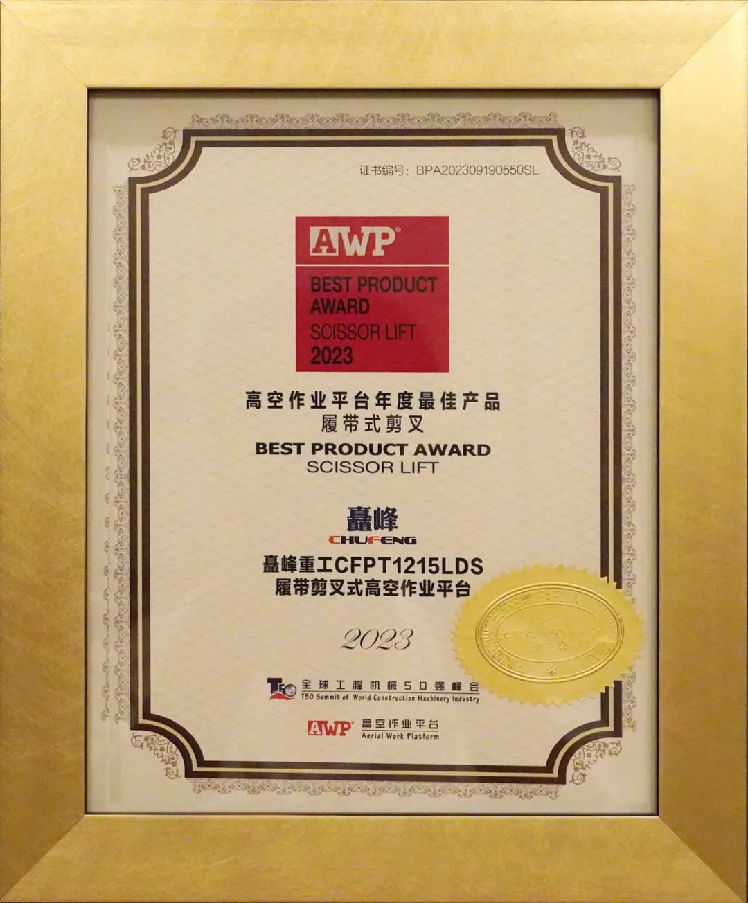 尤其是其支腿履帶12米、電驅(qū)4.5米,憑借其穩(wěn)定的表現(xiàn)和卓越的性能,榮獲了“高空作業(yè)平臺(tái)年度最佳產(chǎn)品”這一獎(jiǎng)項(xiàng)。這也是矗峰重工在進(jìn)入高空作業(yè)設(shè)備領(lǐng)域后,技術(shù)研發(fā)能力得到市場(chǎng)認(rèn)可的體現(xiàn)。
